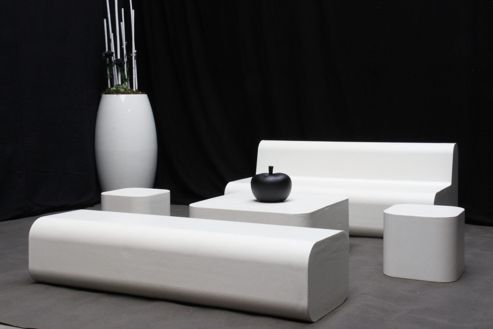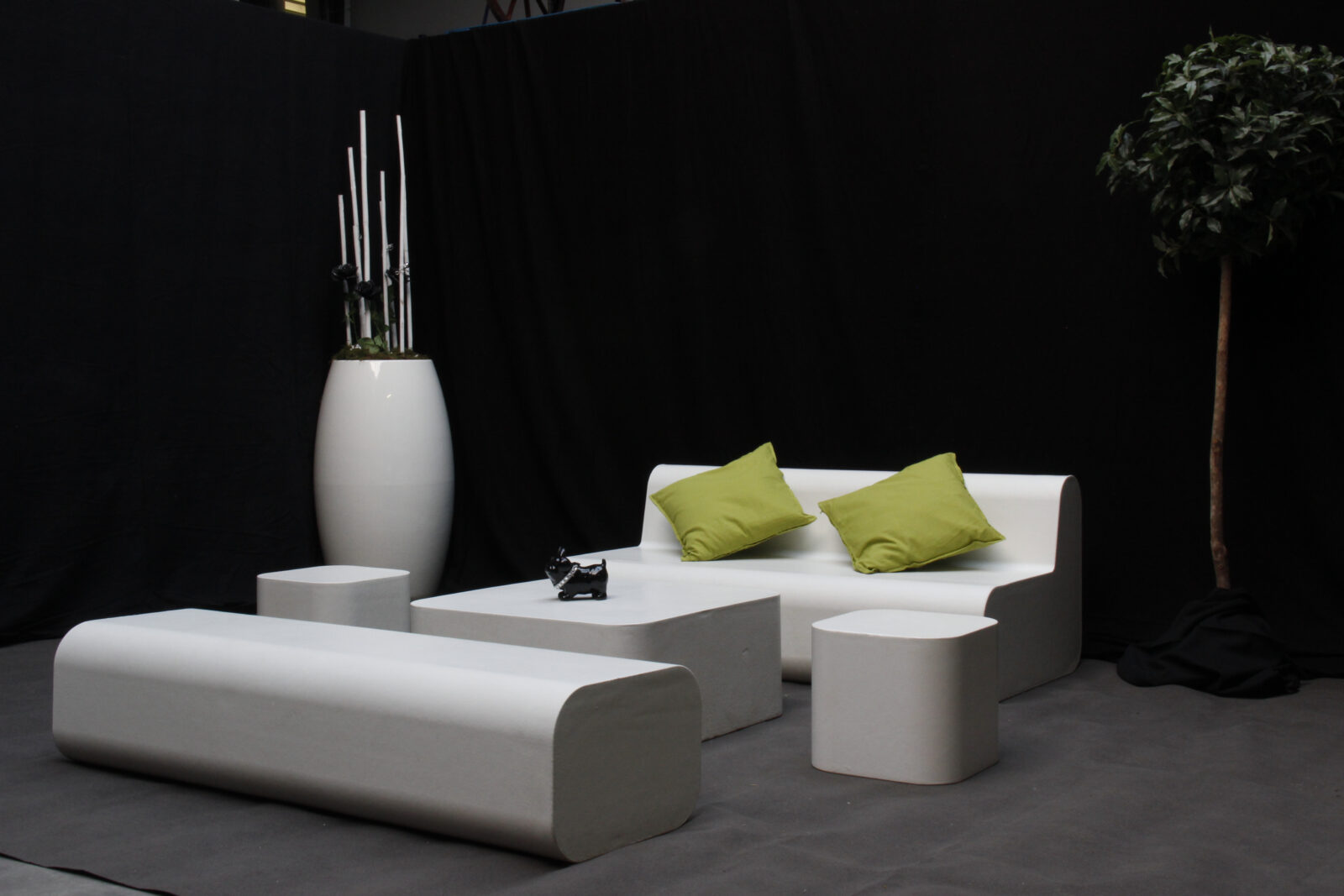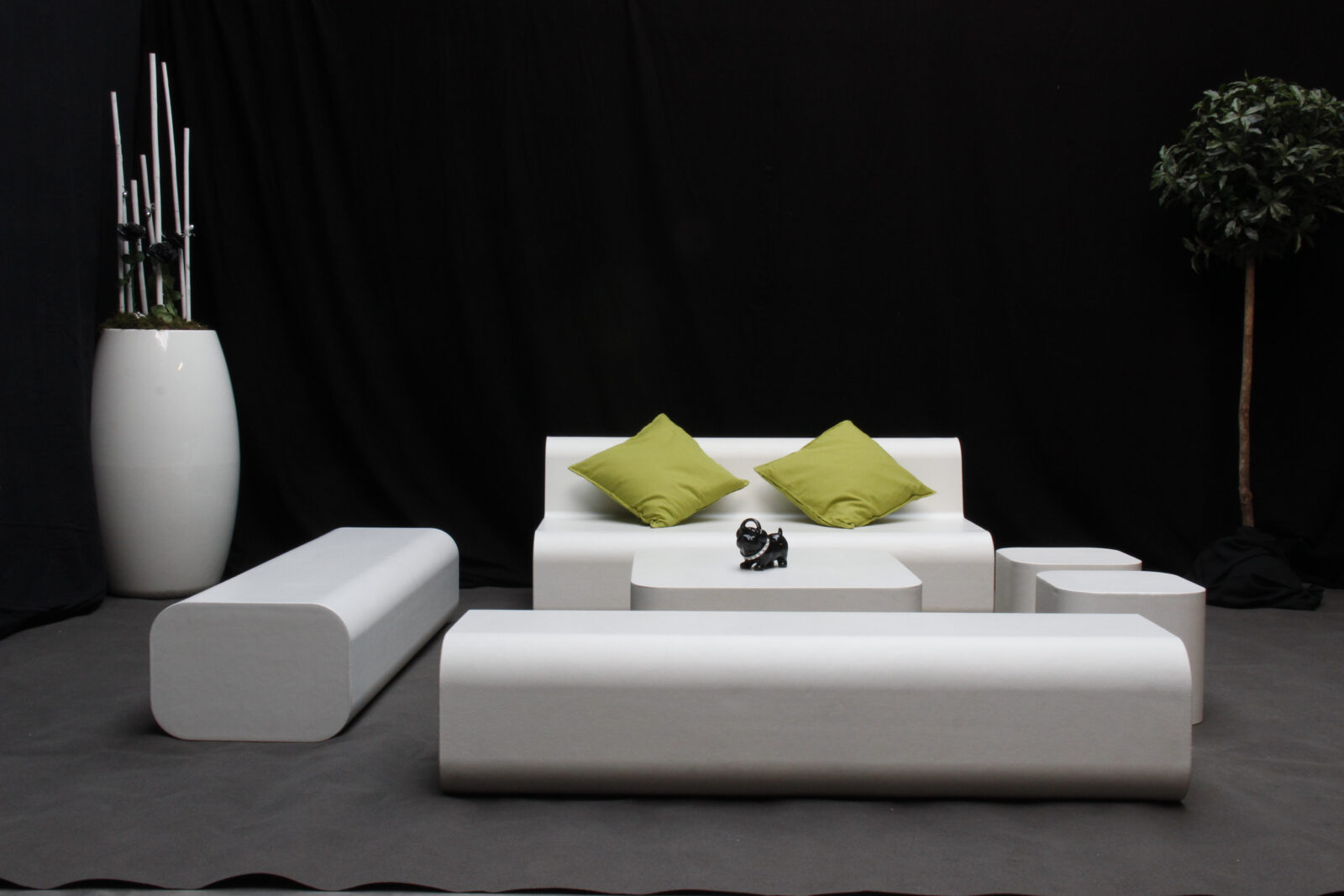 2x bank, 1x zetel, 1x tafel, 2x poef